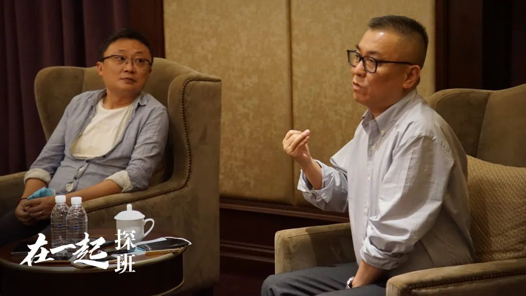 导演沈严(左)、上海文广影视集团副总裁陈雨人(右)