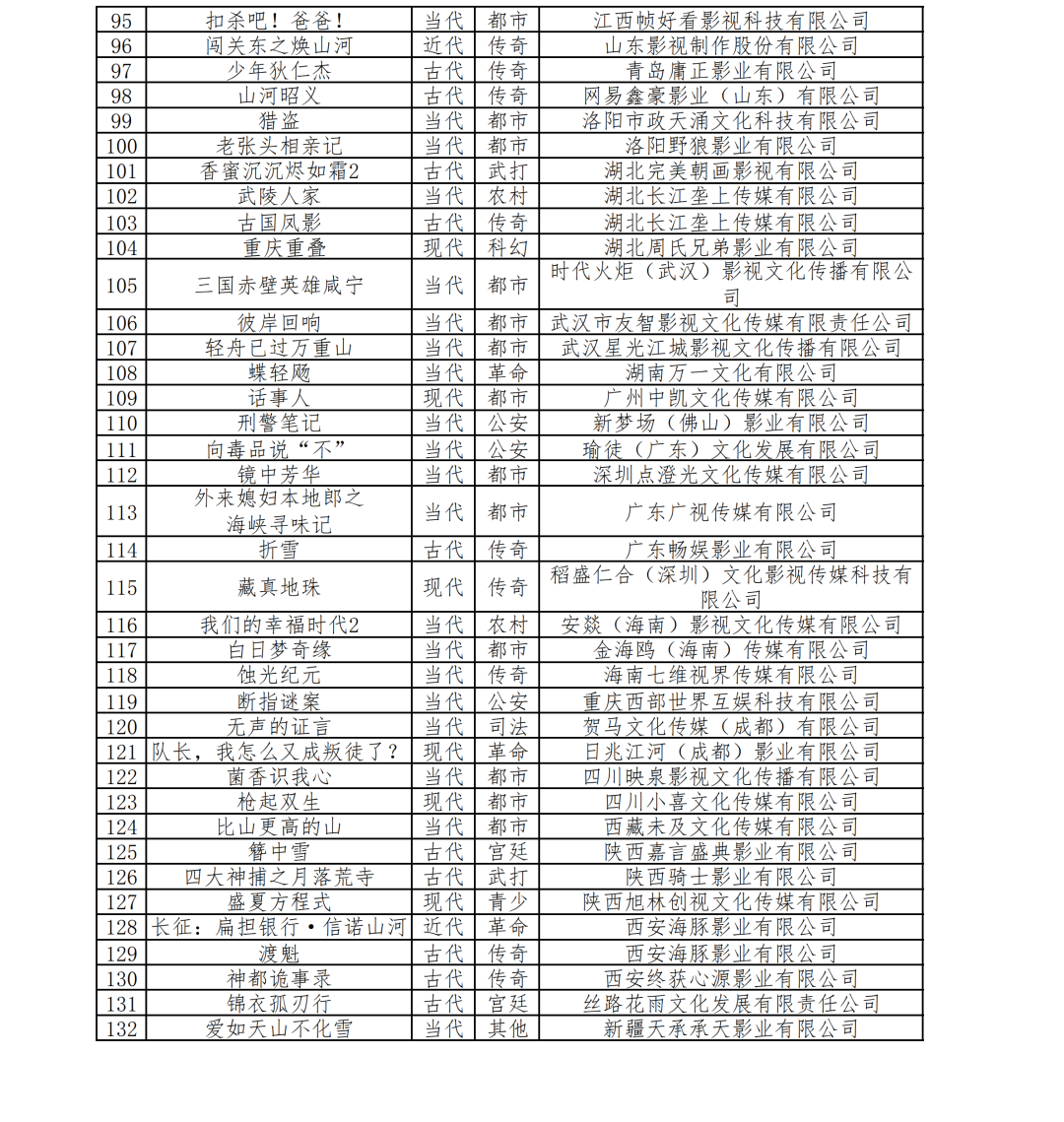 1月规划备案完整剧目名单