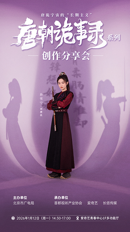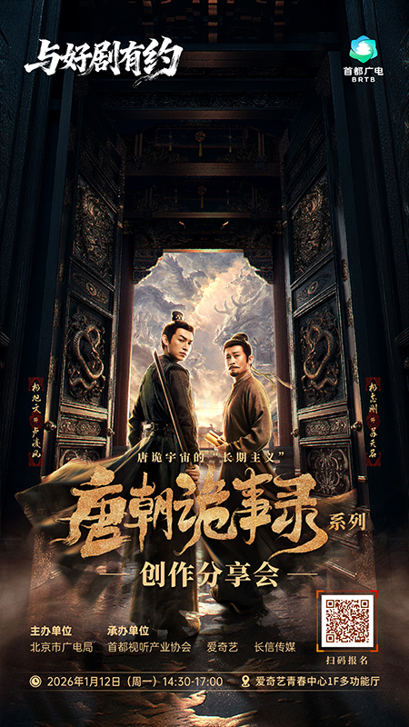 为深入解析该系列在创作方法论、IP构建与全产业链开发上的成功路径,由北京市广电局主办,首都视听产业协会联合爱奇艺、长信传媒承办的“与好剧有约——《唐朝诡事录》系列创作分享会”将于2026年1月12日(周一)14:30-17:00,在爱奇艺举办。本次活动以“唐诡宇宙的‘长期主义’”为主题,汇聚政、产、学、研及核心主创多方力量,旨在系统梳理《唐诡》从内容创作到产业开发的完整经验,共同探讨国产影视从“流量思维”向“价值思维”的转型路径,提炼原创IP长效发展的核心逻辑。